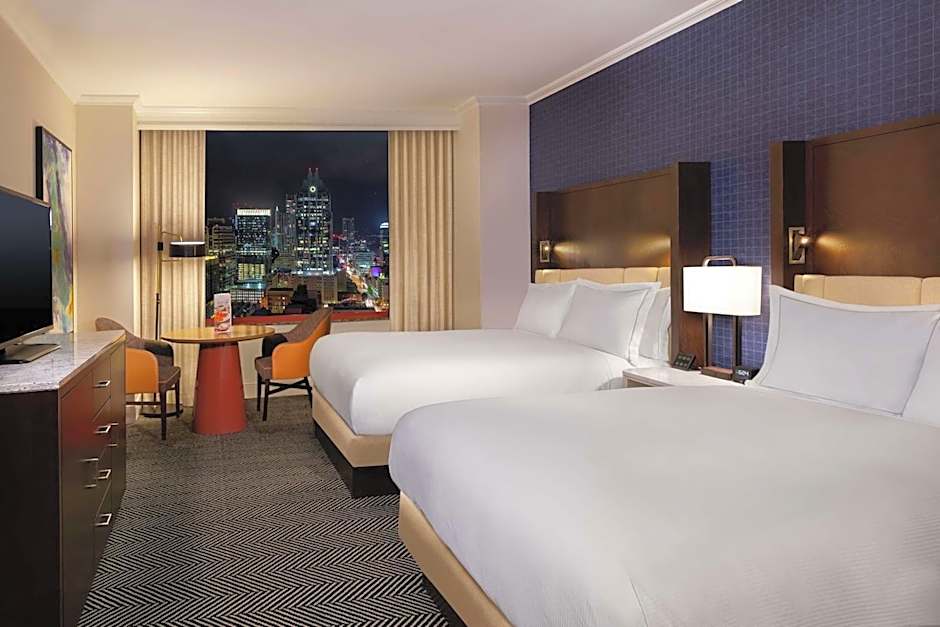 An iPod dock and flat-screen cable TV are available in this room. This double room comes with 2 large double beds. It also offers a skyline view.